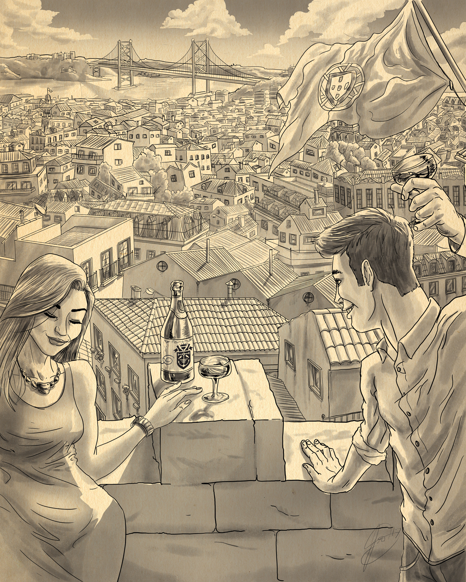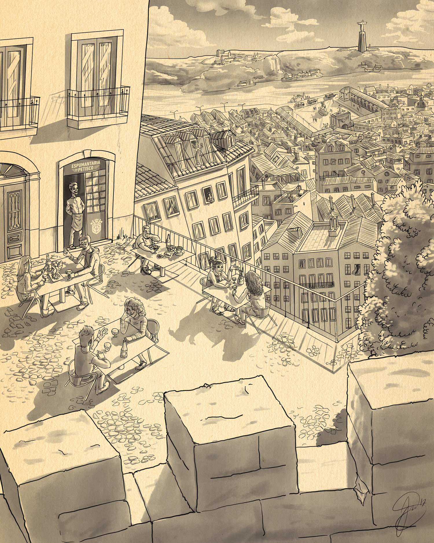 These two Illustrations, created for Espumantaria do Cais, capture the enrivonment of the bar,